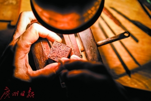 事實(shí)上,項(xiàng)頌秋并非家族中刻章的第一代,他的叔公和父親都在廣州刻章界知名,其中叔公更是被譽(yù)為清末著名金石篆刻家。