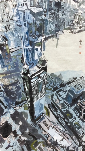 《地王大廈》,196cm×73cm,宣紙,2015年