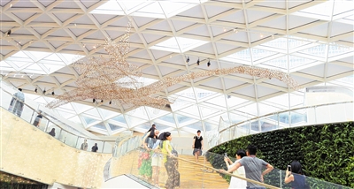 長20米,重300公斤,一件由40個部件構(gòu)成的、形如飛鳥的大型裝置作品懸掛在新近開業(yè)的華潤萬象天地穹頂。這是日本藝術(shù)家北山善夫?yàn)槿f象天地量身打造的藝術(shù)作品《無形》,特別值得一提的是,如此巨大的作品,是由藝術(shù)家用竹枝和紙,耗時數(shù)月純手工制作完成。北山善夫說:“我生命的意義不在于作品本身,而是在制作這些作品的過程中?!?/p>