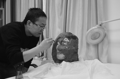 和我們拼圖不同,文物是立體的,大型、復(fù)雜的,要分多個局部分別粘接,不但要頭腦中勾畫立體圖,還要講究歸位的次序,考慮后面的部分是否放得進(jìn)去。前面一個小問題,都會導(dǎo)致最后合拼時茬口對不上。而且,修復(fù)師手中的每一個碎片都是惟一的,已粘接上的殘片輕易不能打開重來,那樣很可能對文物造成新的傷害。