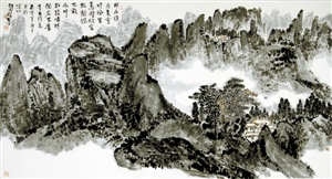 王和平不僅能書寫2尺的大字,還能寫篆書、隸書、行書、草書、楷書,他尤其擅長以指書寫長線條幅,還能書寫小到1寸左右的楷書、行書、草書等各種書體?!皬乃摹饵S山系列》,我看到了一個堅強的古典腳步,追尋在范寬的《谿山行旅途》中,沐李唐的《萬壑松風圖》,聽馬遠的《踏歌圖》……一個精美絕倫的藝術(shù)時代遠逝而去,念天地之悠悠,獨愴然而涕下。留幽幽懷古者,追憶圣賢高士清歌古琴于卷軸中的絕美風騷。王和平和我都是這個幽幽懷古者,追求高貴古典精神的尋賢之人?!边@是評論家豐川在他的《心有千像,十指墨弦》一文中評價王和平的指書所述。
