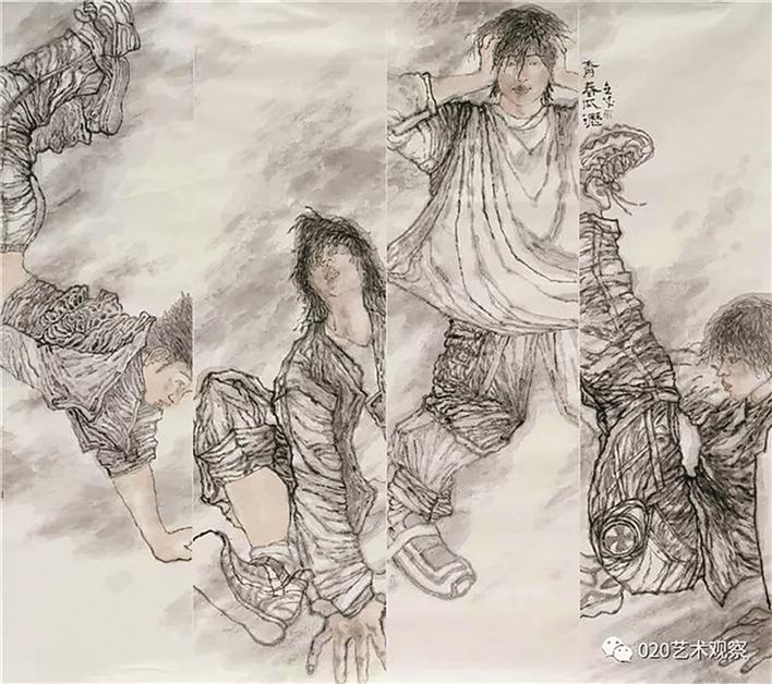 據(jù)悉,原作正是深圳市福田區(qū)美術(shù)家協(xié)會(huì)主席張闖《2004—街舞》布面油彩,有所不同的是涉嫌抄襲的作品是國畫。從細(xì)節(jié)對(duì)比上看,作品相似度極高。此外,涉嫌抄襲的作品的方向與張闖的原作相反。有人猜測,涉嫌抄襲的作者是將張闖《2004—街舞》通過電腦制作反轉(zhuǎn)過來,或者是投影后制作完成作品的。