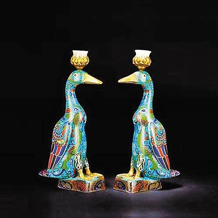 ▲清代掐絲琺瑯雁形燭臺(tái)