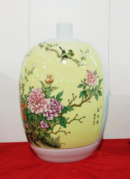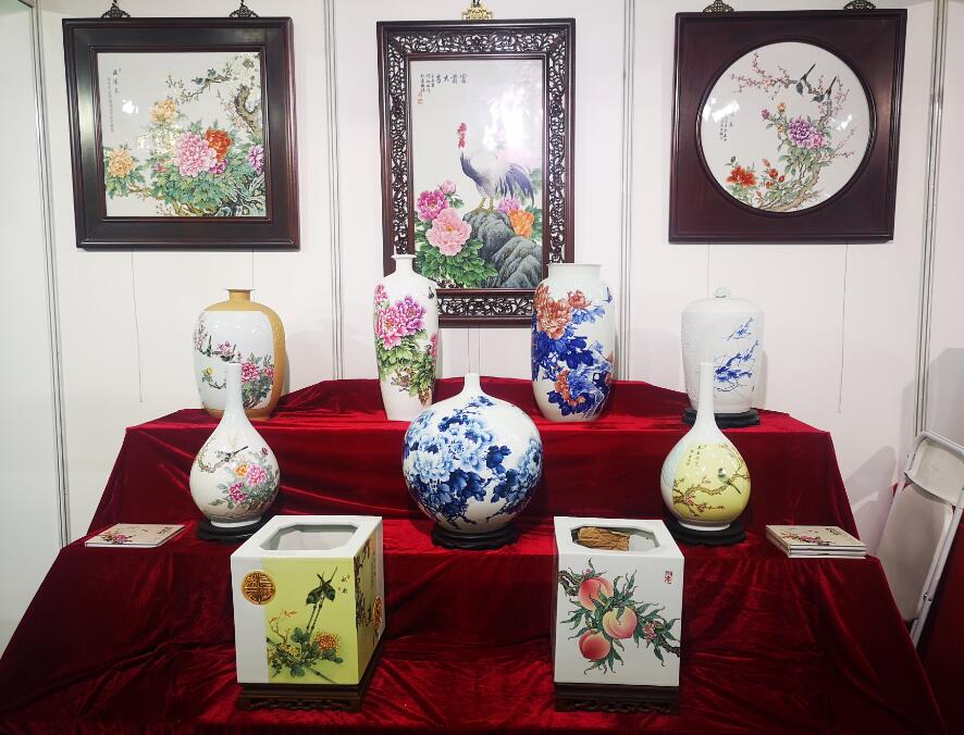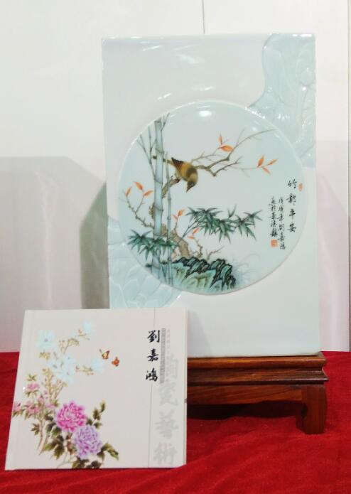 江西省陶瓷技能大師、江西省高級(jí)工藝美術(shù)師、惲派花鳥第十二代傳人、景德鎮(zhèn)青年陶瓷藝術(shù)家劉嘉鴻此次展會(huì)展出的陶瓷藝術(shù)作品共計(jì)35件,包含瓷板畫、瓷瓶、瓷盤、青花瓷、青花斗彩瓷等,其中《春滿園》、《錦堂富貴》、《長壽圖》等作品呈現(xiàn)陶瓷技藝,展示出劉嘉鴻深厚的藝術(shù)造詣。
