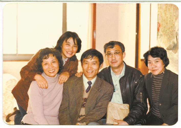 1985年,祝希娟和影片《紅色娘子軍》劇組部分成員在廣州聚會(左二蔣逸芳、左三牛犇、右二謝晉、右一王黎)。