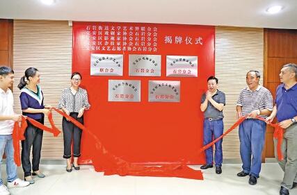 寶安日?qǐng)?bào)2019年07月02日訊(記者 張浩 通訊員 羅宇文 實(shí)習(xí)生 陳品翰 文/圖)近日,石巖街道文學(xué)藝術(shù)界聯(lián)合會(huì)、區(qū)戲劇家協(xié)會(huì)石巖分會(huì)、區(qū)影視家協(xié)會(huì)石巖分會(huì)、區(qū)攝影家協(xié)會(huì)石巖分會(huì)、區(qū)雜技家協(xié)會(huì)石巖分會(huì)、區(qū)文藝志愿者協(xié)會(huì)石巖分會(huì)揭牌儀式在石巖街道舉行。各協(xié)會(huì)成立后將進(jìn)一步挖掘、利用石巖的文化資源,推動(dòng)文化事業(yè)蓬勃發(fā)展。區(qū)文聯(lián)、石巖街道等單位領(lǐng)導(dǎo)出席了揭牌儀式。