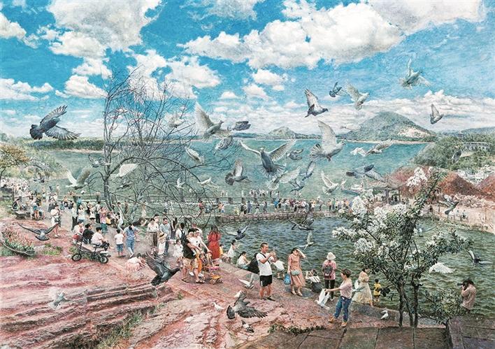 頡元芳的《遠(yuǎn)方》表現(xiàn)了內(nèi)蒙古西北草原民族的人文情感和真實(shí)的生活狀態(tài);向園的《夏風(fēng)》運(yùn)用浪漫主義和象征主義的創(chuàng)作手法,讓我們回到一種自然、安寧、和諧的畫(huà)境之中;奚忠恕的《天路》,讓我們直面感受到面對(duì)“最美奮斗者”,用畫(huà)筆為他們點(diǎn)贊;吳登軍的《遺失的世界系列——三十六》呈現(xiàn)了他對(duì)環(huán)境問(wèn)題的思考。