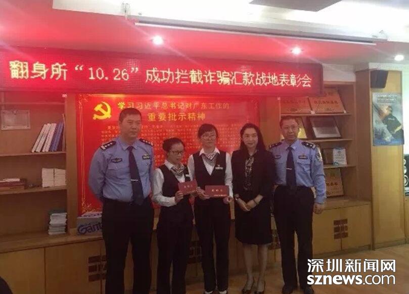 近日,深圳寶安翻身派出所召集轄區(qū)銀行網(wǎng)點(diǎn)負(fù)責(zé)人,舉行“10.26”成功攔截詐騙匯款戰(zhàn)地表彰會(huì),該所所長(zhǎng)親自為行深圳寶安幸福支行兩名攔截有功人員頒發(fā)慰問(wèn)獎(jiǎng),并對(duì)該行在打擊電信網(wǎng)絡(luò)新型違法犯罪活動(dòng)中勇于擔(dān)當(dāng)社會(huì)責(zé)任,積極開(kāi)展防范詐騙宣傳教育,注重反詐騙業(yè)務(wù)知識(shí)培訓(xùn)等方面所做出的努力給予充分肯定。