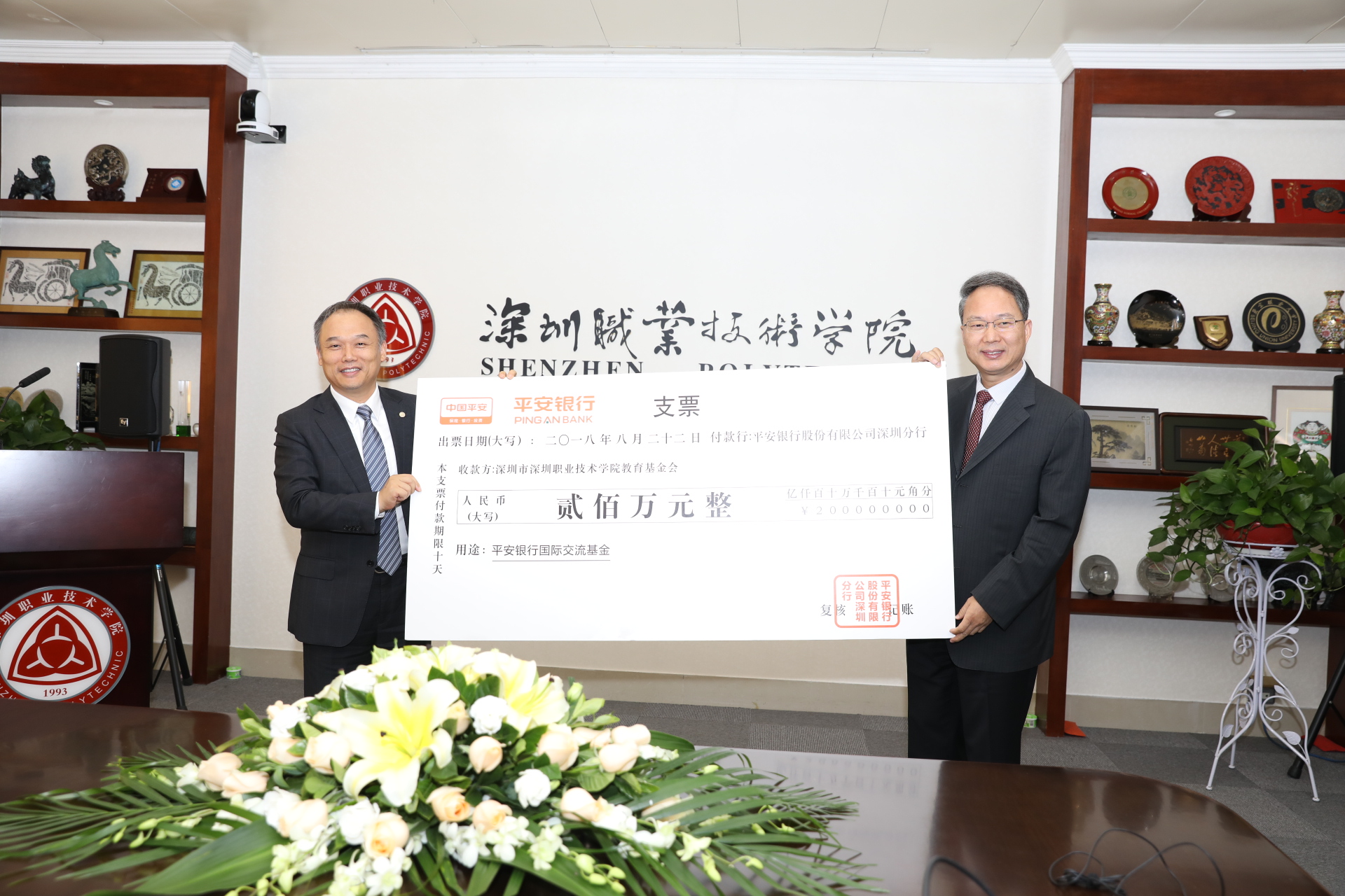 2018年11月22日,平安銀行與深圳職業(yè)技術(shù)學院校園一卡通項目交付儀式暨國際交流基金捐贈儀式在深圳職業(yè)技術(shù)學院101會議室隆重舉行。平安銀行行長助理、深圳分行楊志群行長、孫芳滔副行長、陳宏敬副行長、高寒竹零售總監(jiān),深圳職業(yè)技術(shù)學院陳秋明黨委書記、唐曉鳴副校長、董朝君副校長等領(lǐng)導(dǎo)出席了儀式。