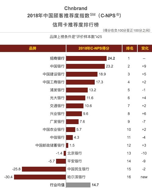 今年1月,2018年C-NPS顧客最推薦品牌大獎(jiǎng)?lì)C獎(jiǎng)典禮舉行,C-NPS中國顧客推薦度指數(shù)是反映消費(fèi)者愿意向他人推薦企業(yè)產(chǎn)品或服務(wù)的程度。頒獎(jiǎng)典禮上,招行信用卡榮獲信用卡行業(yè)顧客推薦度指數(shù)第一名?! ?/p>