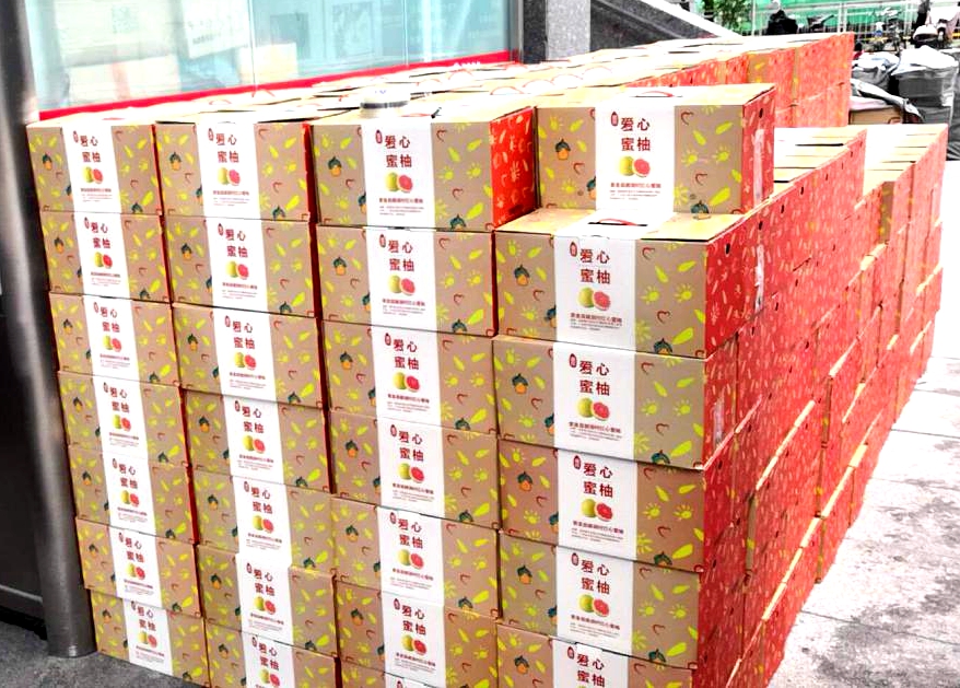 經(jīng)過(guò)緊急分類(lèi)包裝運(yùn)輸?shù)椒中械摹皭?ài)心蜜柚”