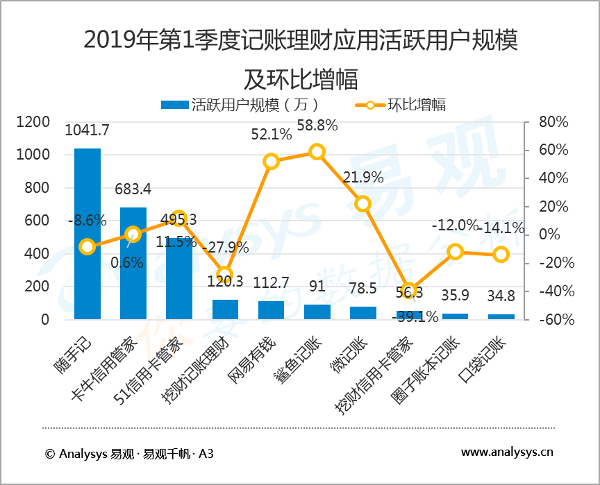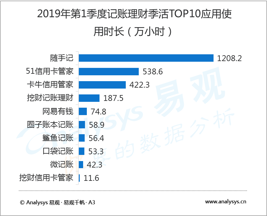 5月24日,知名互聯(lián)網(wǎng)數(shù)據(jù)研究機(jī)構(gòu)易觀 Analysys發(fā)布了2019年第1季度記賬理財(cái)行業(yè)報(bào)告,數(shù)據(jù)顯示,2019年第1季度,在國(guó)內(nèi)記賬類(lèi)應(yīng)用中,隨手記以1041.7萬(wàn)活躍用戶(hù)規(guī)模蟬聯(lián)榜首,卡牛信用管家和51信用卡管家分別以683.4萬(wàn)和495.3萬(wàn)活躍用戶(hù)規(guī)模居行業(yè)二、三位。