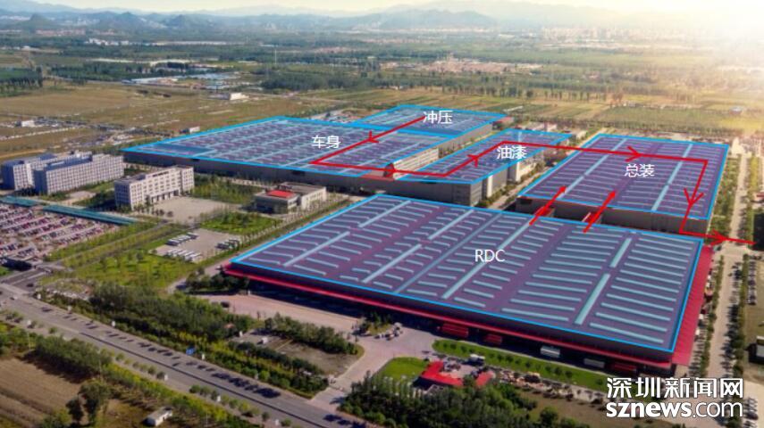車身車間總占地面積9.9萬㎡,采用互聯(lián)機(jī)器人、柔性NC定位系統(tǒng)、柔性夾具切換系統(tǒng)、自動化輸送系統(tǒng),標(biāo)準(zhǔn)化工藝體系、三層環(huán)網(wǎng)智能管理系統(tǒng)、國際安全標(biāo)準(zhǔn),主線自動化率95%;采用柔性智能生產(chǎn)線,在同一條生產(chǎn)線可完成8個不同的車型無節(jié)拍損失自動切換和混線生產(chǎn)。