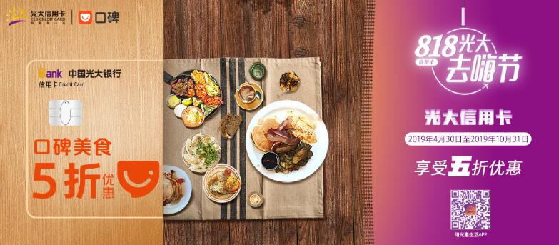 每周一至每周日,光大信用卡用戶且在支付寶實名認證個人用戶,在口碑平臺美食消費或享受五折優(yōu)惠。