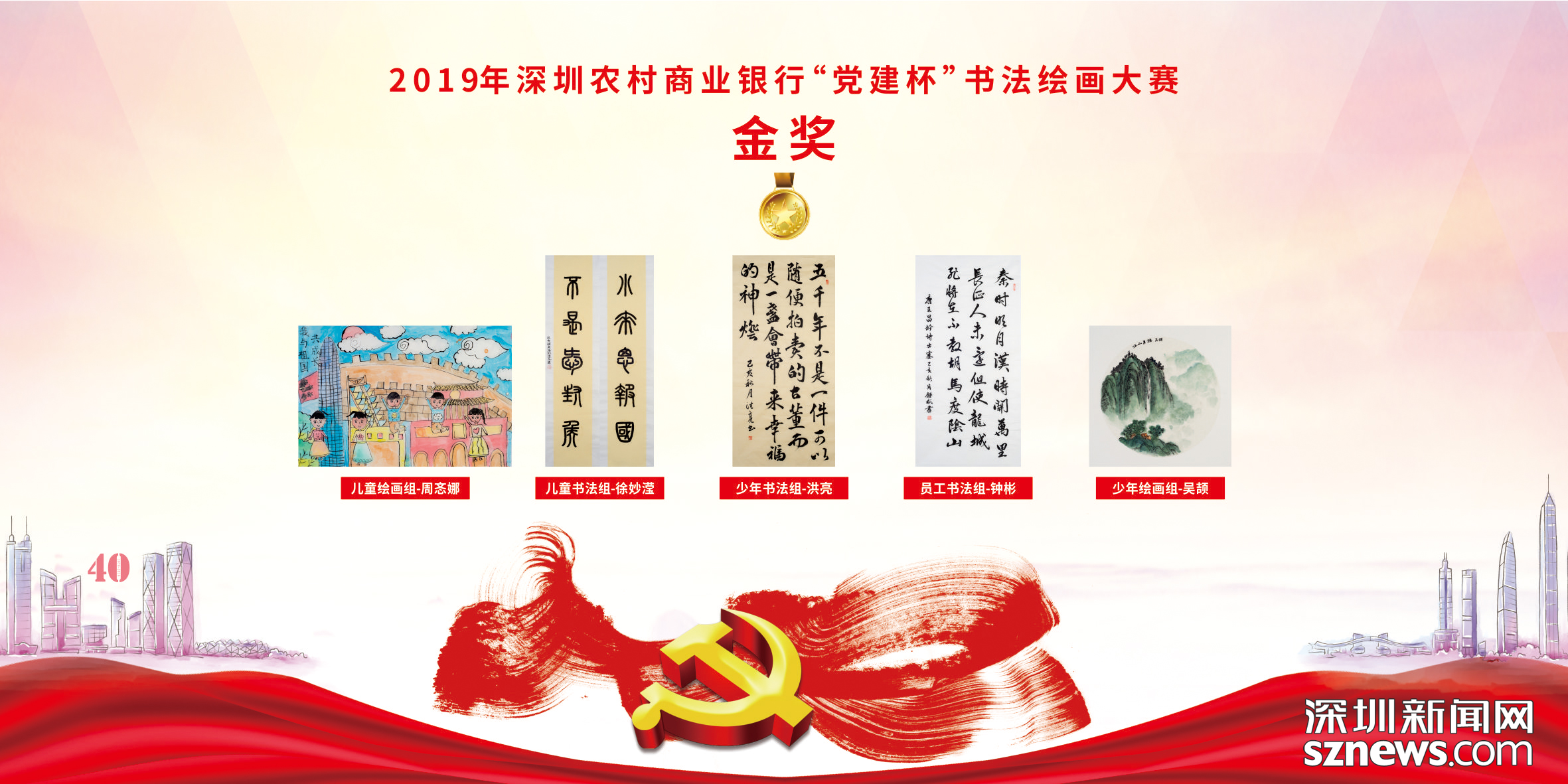 我的中國,我的深圳“黨建杯”少兒書法繪畫大賽金獎選手合影