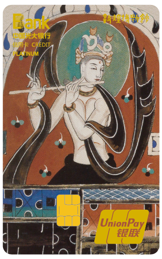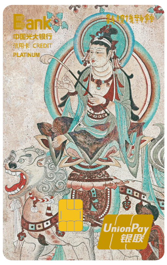 光大敦煌聯(lián)名信用卡卡面設(shè)計(jì)取材于敦煌壁畫,有敦煌大智文殊白金卡、敦煌天宮伎樂(lè)白金卡以及敦煌五百?gòu)?qiáng)盜成佛菁英白金卡三種信用卡。光大敦煌聯(lián)名信用卡的卡面設(shè)計(jì)靈感均來(lái)源于敦煌壁畫,大智文殊白金卡畫面為文殊菩薩結(jié)跏坐于青面獅虬首仙獅背上。文殊菩薩是專司智德、辯才第一的大菩薩,尊號(hào)“大智文殊”。天宮伎樂(lè)白金卡主體畫面為伎樂(lè)天,取材于莫高窟288窟,營(yíng)造了佛陀講經(jīng)說(shuō)法時(shí)佛國(guó)世界歡樂(lè)祥和的氛圍。五百?gòu)?qiáng)盜成佛菁英白金卡卡面設(shè)計(jì)取自“五百?gòu)?qiáng)盜成佛”的壁畫故事,佛用神通使被剜去雙眼的強(qiáng)盜重見(jiàn)光明,并對(duì)他們進(jìn)行點(diǎn)化,五百?gòu)?qiáng)盜潛心苦修終成五百羅漢。光大敦煌聯(lián)名信用卡的卡面設(shè)計(jì)將傳統(tǒng)文化融入現(xiàn)代金融產(chǎn)品,極具敦煌文化的風(fēng)格。
