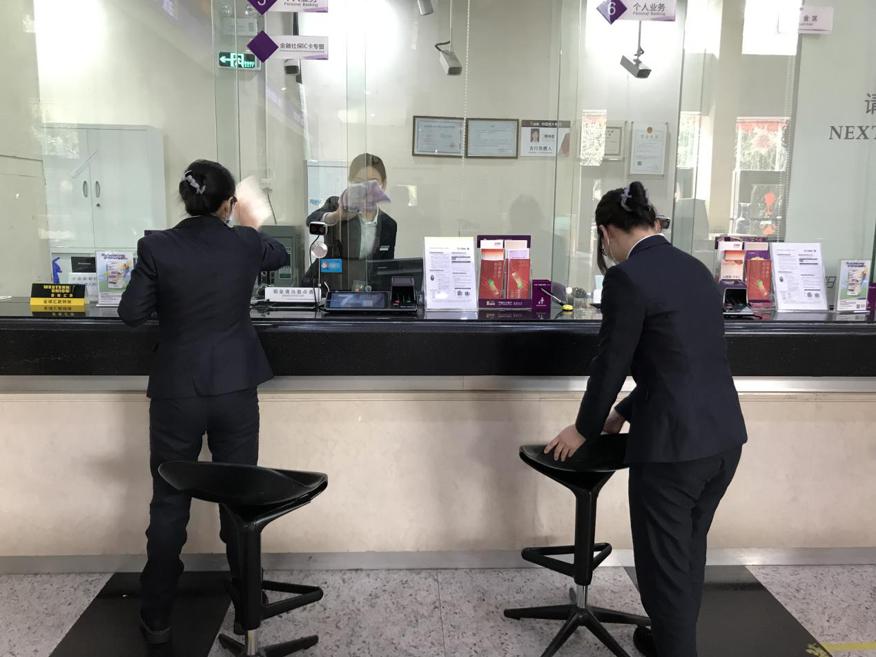 在此期間,為降低疫情傳播風(fēng)險(xiǎn),網(wǎng)點(diǎn)員工每天堅(jiān)持提前到崗,除自身佩戴口罩外,還用消毒液擦拭柜臺(tái)內(nèi)外及大堂桌椅和機(jī)器,為來行客戶提供安全舒適的環(huán)境。(通訊員 樓蓉 李昕)