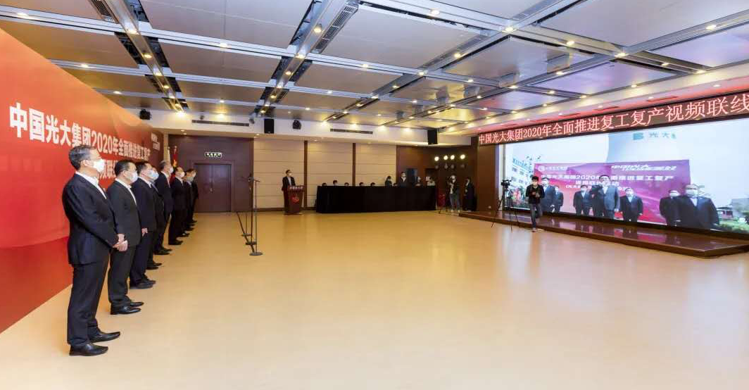 為在常態(tài)化疫情防控中加速推進全面復工復產工作,把疫情造成的損失降到最低限度,確保實現全年經營任務,4月17日,光大集團舉行2020年全面推進復工復產視頻聯線活動。集團領導李曉鵬、吳利軍、朱洪波、吳少華、蔡允革、單記京、劉金、付萬軍、于法昌出席,為全集團各板塊和全體員工加油鼓勁,提升集團全面復工復產的“加速度”。