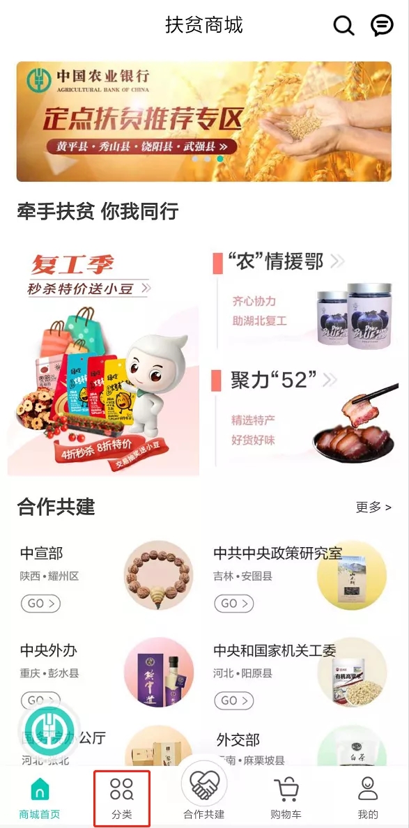進入“扶貧商城”,點擊“分類”