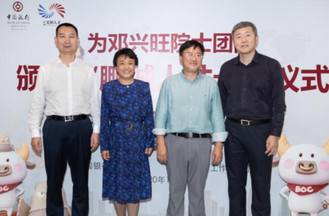深圳新聞網(wǎng)·見圳客戶端2020年11月8日訊 昨日,深圳市光明區(qū)委常委、組織部部長繩萬青,中國銀行深圳市分行副行長韓竹代表深圳市光明區(qū)人才辦和中國銀行深圳市分行,為生物學(xué)家、美國國家科學(xué)院院士鄧興旺及部分團(tuán)隊(duì)成員頒發(fā)了“中銀鵬城人才卡”鉆石卡,這是全市范圍內(nèi)首張向在深院士發(fā)放的“中銀鵬城人才卡”,標(biāo)志著這張由光明區(qū)人才辦和深圳中行共同策劃推出的人才卡實(shí)現(xiàn)了市級認(rèn)定的各層級人才全覆蓋。鄧興旺院士是深圳市杰出人才獲得者、深圳市作物分子設(shè)計(jì)育種研究院院長、深圳興旺生物種業(yè)有限公司董事長,他帶領(lǐng)團(tuán)隊(duì)2010年到深圳創(chuàng)業(yè),多年來在水稻領(lǐng)域取得兩項(xiàng)重大技術(shù)突破,其中“潔田模式”大規(guī)模市場示范面積達(dá)到50萬畝,有效加快了中國農(nóng)業(yè)的輕簡化、現(xiàn)代化步伐。