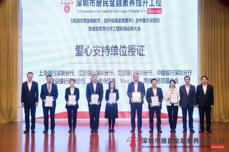 在隨后的授證儀式中,上海銀行深圳分行因?qū)ι钲谑芯用窠鹑谒仞B(yǎng)提升工程做出的突出貢獻,及推動深圳金融安全建設與可持續(xù)發(fā)展,被授予了“愛心支持單位”榮譽稱號。