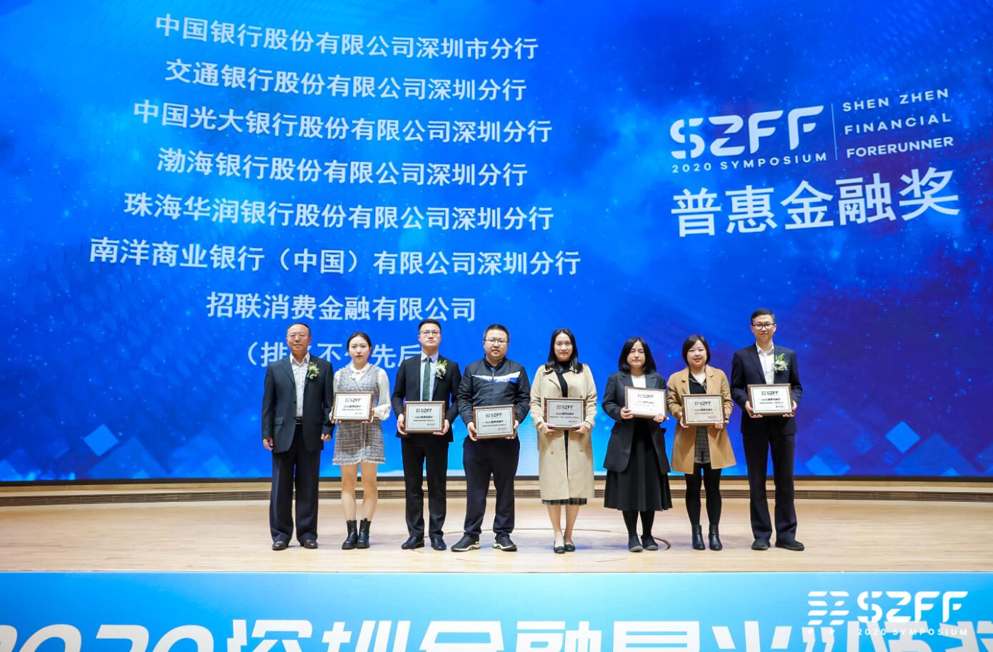 深圳新聞網(wǎng)·見圳客戶端2020年12月30日訊 日前,在由鳳凰網(wǎng)廣東、深圳市金融穩(wěn)定發(fā)展研究院、深圳市銀行業(yè)協(xié)會、深圳市保險同業(yè)公會攜手舉辦“2020深圳金融星光”頒獎盛典暨“新?lián)敗ど钲诮鹑跇I(yè)先行示范創(chuàng)新發(fā)展”研討會(簡稱2020SZFF大會)活動中,光大銀行深圳分行摘得2020杰出貢獻獎、普惠金融獎、最佳銀行服務(wù)獎三項大獎,深圳分行營業(yè)部理財經(jīng)理彭雨、龍華民塘支行個貸經(jīng)理馬小雙、信用卡業(yè)務(wù)部產(chǎn)品經(jīng)理鹿含、公司業(yè)務(wù)管理部副總經(jīng)理趙明、渠道管理/消費者權(quán)益保護部總經(jīng)理樓蓉、辦公室品牌經(jīng)理李昕、辦公室品牌經(jīng)理沈婷等榮獲2020優(yōu)秀星光人物獎和優(yōu)秀通訊員榮譽稱號。