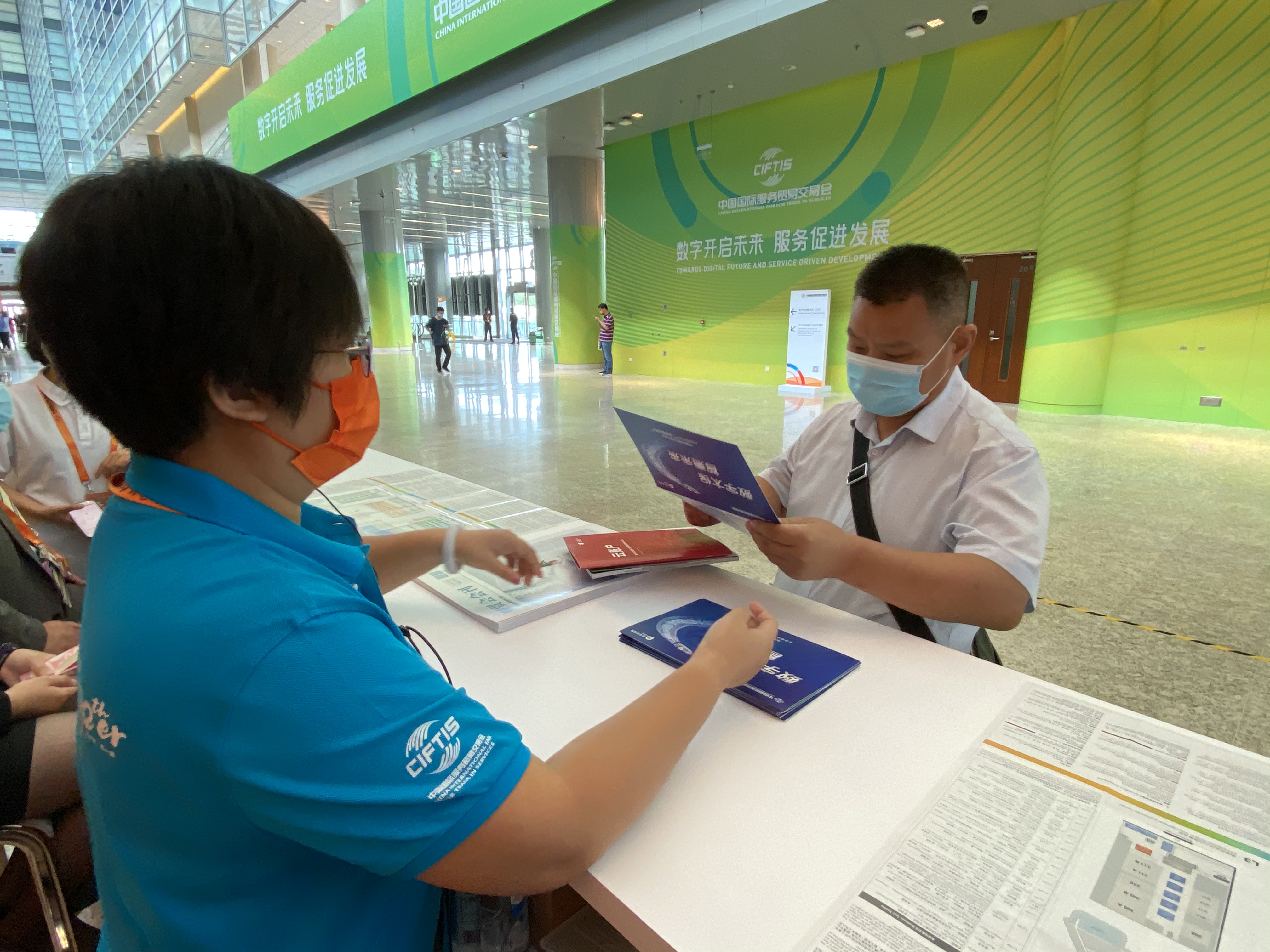 9月3日下午,一位女士焦急的地在服貿(mào)會(huì)首鋼園區(qū)攔住了中國(guó)太保工作人員王文雨和周銳。