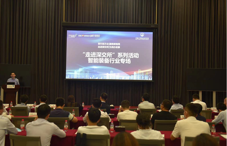本次活動以智能裝備行業(yè)專場宣講與圓桌論壇為主,多家優(yōu)質(zhì)智能裝備企業(yè)參加?;顒娱_始,深圳證券交易所市場發(fā)展部與浦發(fā)銀行交易銀行部相關(guān)領(lǐng)導從國家政策面、經(jīng)濟面分析了中小企業(yè)、科創(chuàng)企業(yè)所處的歷史發(fā)展機遇,并介紹了“走進深交所”系列活動的初衷與意義——“信息共享、流程互通、功能互補,打造從0到1、從IP到IPO,共建為中小企業(yè)服務的金融生態(tài),攜手為國家經(jīng)濟發(fā)展貢獻力量”。隨后,深圳證券交易所、浦發(fā)銀行與招商證券介紹了智能裝備行業(yè)發(fā)展趨勢下的投融資規(guī)劃、上市路徑、支持政策以及相關(guān)金融服務,并針對經(jīng)營發(fā)展困惑同與會企業(yè)進行一對一、面對面的交流。