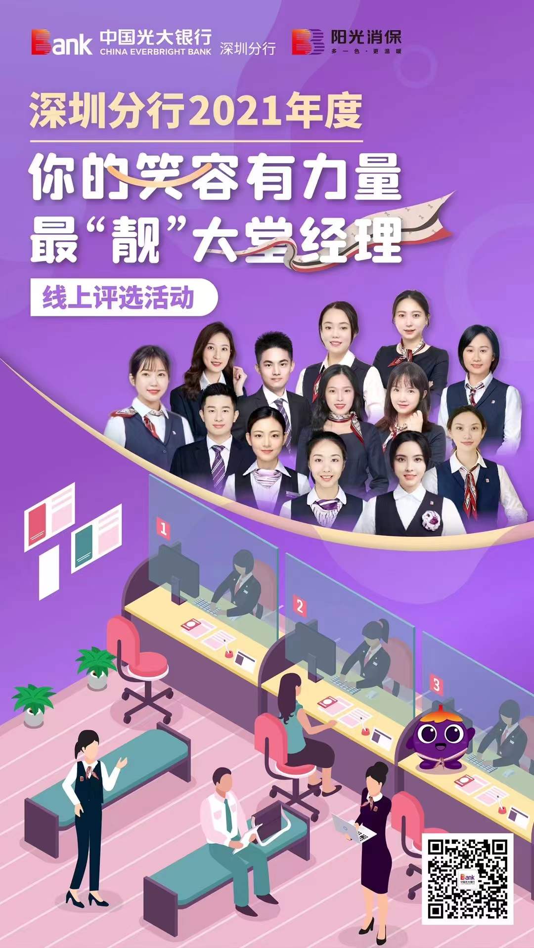 深圳新聞網(wǎng)2022年1月24日訊(記者 朱琳 通訊員 樓蓉 沈婷)近日,光大銀行深圳分行2021年度“你的笑容有力量最靚大堂經(jīng)理”線上評選活動結(jié)果揭曉,來自十家網(wǎng)點的十名大堂經(jīng)理脫穎而出,獲評2021年光大銀行深圳分行“最靚大堂經(jīng)理”榮譽稱號。