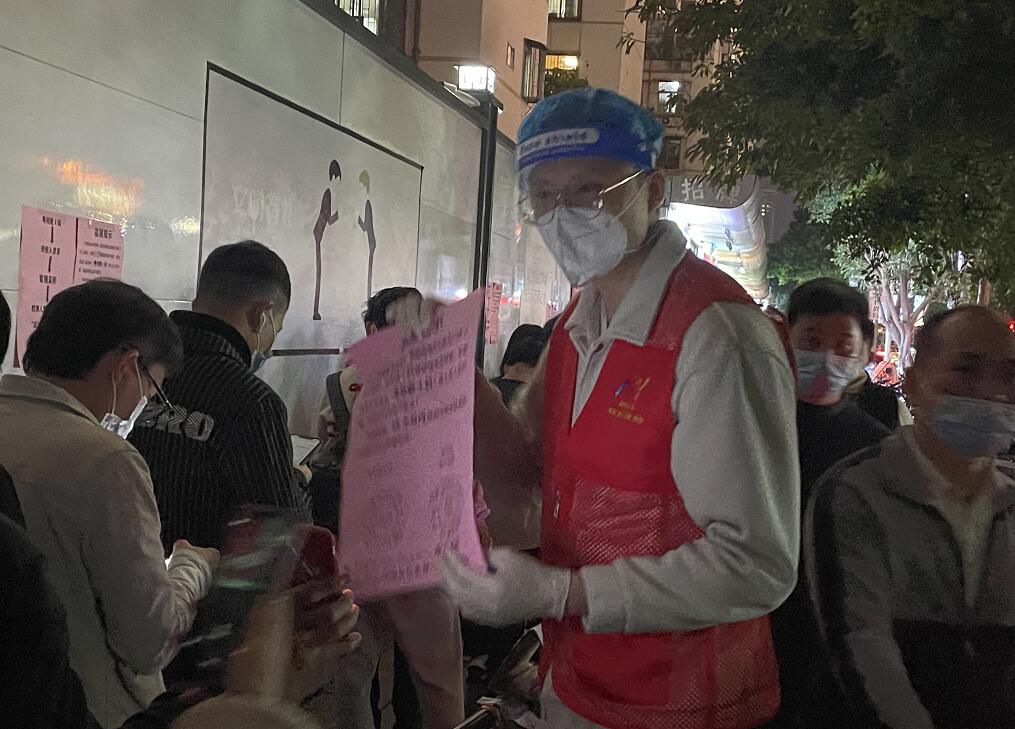 2月18日,青年志愿者們顧不上吃晚飯,一下班就奔赴南園社區(qū)核酸篩查檢測點,與南園社區(qū)的志愿者們一起投入到維護核酸采集秩序的隊伍中,一直服務(wù)到深夜。