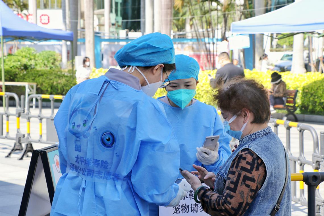 自3月9日起,中國太保壽險(xiǎn)深圳分公司志愿者每天分兩批前往蓮花一村社區(qū)核酸點(diǎn)開展志愿服務(wù)。在社區(qū)入口,他們嚴(yán)守“入口關(guān)”,輕聲提醒社區(qū)居民和訪客掃描“場(chǎng)所碼”,認(rèn)真查驗(yàn)每一位居民和訪客的健康碼情況;在核酸服務(wù)隊(duì)伍,他們耐心維持隊(duì)伍秩序,提醒居民做好自我防護(hù)、保持一米距;在核酸服務(wù)綠色通道處,他們以熱情的態(tài)度詳細(xì)解答居民的疑惑,指導(dǎo)老人、小孩和特殊人群掃碼、填寫資料;在居民樓里,他們拿著小喇叭,一層樓一層樓地提醒居民們下樓做核酸......他們?nèi)σ愿埃栽鷮?shí)的工作、貼心的服務(wù)當(dāng)好疫情聯(lián)防聯(lián)控的“守門員”“服務(wù)員”“宣傳員”,用實(shí)際行動(dòng)點(diǎn)起了陰霾下幾抹火紅的溫暖,架起了抗疫防疫“暖心橋”。