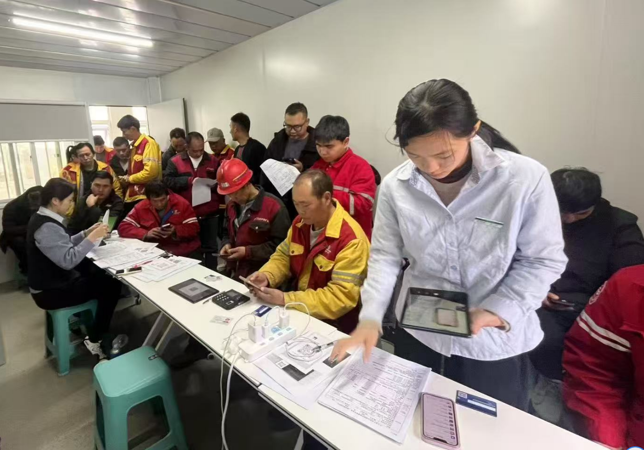面對困難,陳嘉濤深知客戶需求無小事。他果斷決定帶隊前往現(xiàn)場,為當?shù)貑T工集中辦理銀行卡開卡及工資代發(fā)相關(guān)手續(xù)。從繁華的深圳到偏遠的高原,路途遙遠、舟車勞頓,加上高原反應(yīng)帶來的身體不適,讓整個團隊面臨嚴峻考驗。但他們沒有絲毫退縮,抵達后便迅速搭建臨時服務(wù)點,投入到緊張的工作中。