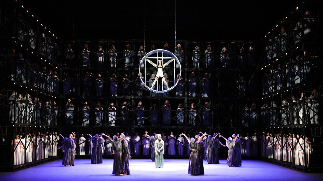 《布蘭詩(shī)歌》演出包含《布蘭詩(shī)歌》與《最后的歌》,由香港芭蕾舞團(tuán)和香港管弦樂(lè)團(tuán)聯(lián)袂呈獻(xiàn)。作品皆取材經(jīng)典藝術(shù)IP,環(huán)繞舞臺(tái)的九米高臺(tái)營(yíng)造出修道院內(nèi)景,過(guò)百位歌唱家現(xiàn)場(chǎng)演唱,場(chǎng)面震撼。