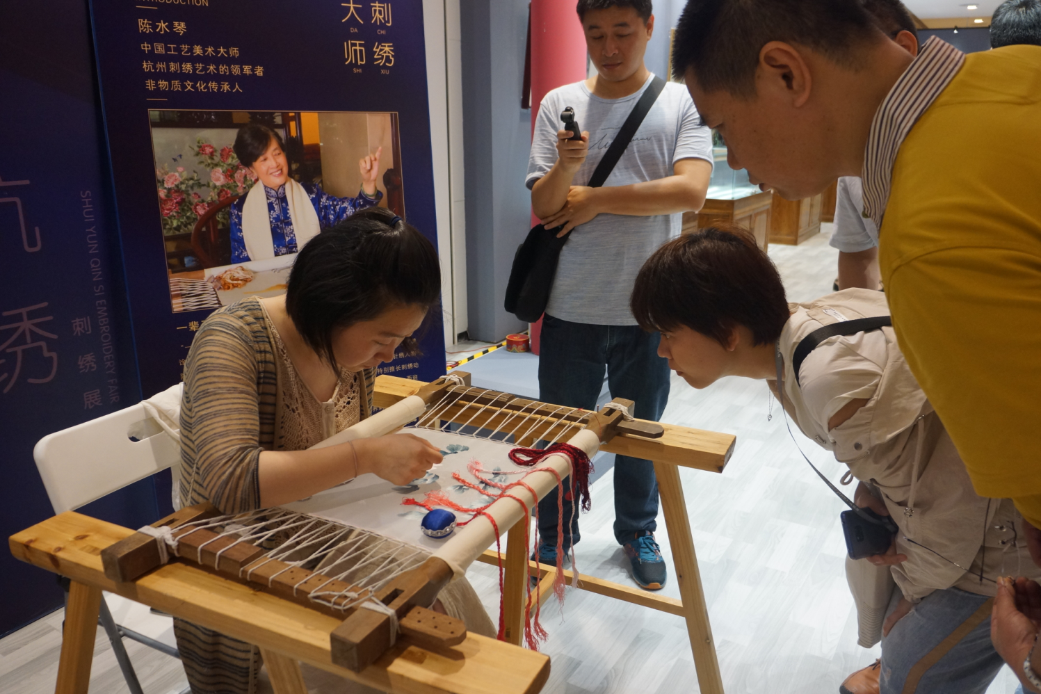 為了構(gòu)建覆蓋范圍廣、展示內(nèi)容豐富的全面文博會(huì)活動(dòng)立體網(wǎng),讓更多的市民群眾能了解文博會(huì)所帶來(lái)的文化內(nèi)涵。在第十五屆文博會(huì)舉辦期間,由深圳國(guó)際文化產(chǎn)業(yè)博覽交易會(huì)有限公司、福田區(qū)文化廣電旅游體育局、福田區(qū)華強(qiáng)北街道辦事處聯(lián)合主辦,中國(guó)文化產(chǎn)業(yè)網(wǎng)協(xié)辦,深圳國(guó)際文博會(huì)拍賣(mài)有限公司負(fù)責(zé)承辦的“中國(guó)工藝美術(shù)大師陳水琴作品展及中華民族傳統(tǒng)工藝—杭繡現(xiàn)場(chǎng)技藝展示和講座系列活動(dòng)”于5月17日在福田區(qū)華強(qiáng)北九方購(gòu)物中心國(guó)家級(jí)非物質(zhì)文化遺產(chǎn)(工藝美術(shù))九方藝術(shù)空間開(kāi)幕,50余件國(guó)家級(jí)藝術(shù)大師杭繡佳作齊聚華強(qiáng)北。