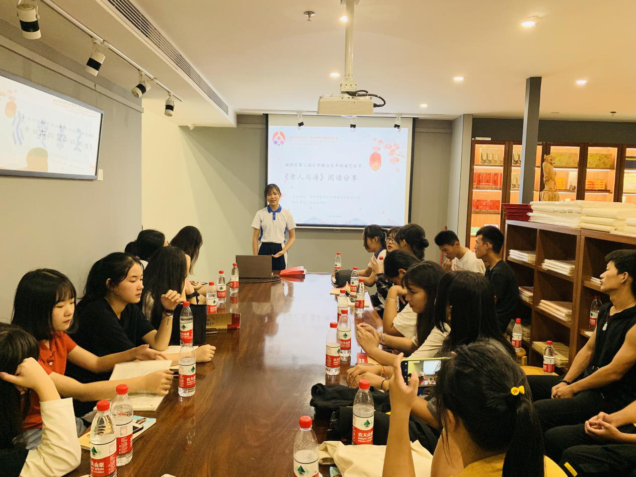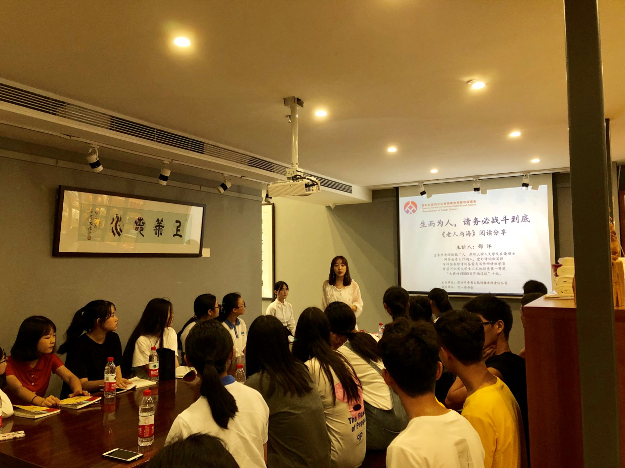 深圳新聞網(wǎng)訊 2019年9月7日,由深圳市壹書文化傳播有限責(zé)任公司主辦、寶山讀書會協(xié)辦的“福田區(qū)第三屆文學(xué)精品有聲閱讀藝術(shù)節(jié)”之《老人與?!烽喿x分享會暨文學(xué)作品朗誦會在簡閱書吧香蜜湖店成功舉辦。來自深圳市寶山技工學(xué)校的學(xué)子們在主講人的啟示下分享閱讀感悟、誦讀精彩文摘,在文藝展演中體會圣地亞哥抗擊命運(yùn)的人生哲學(xué)。