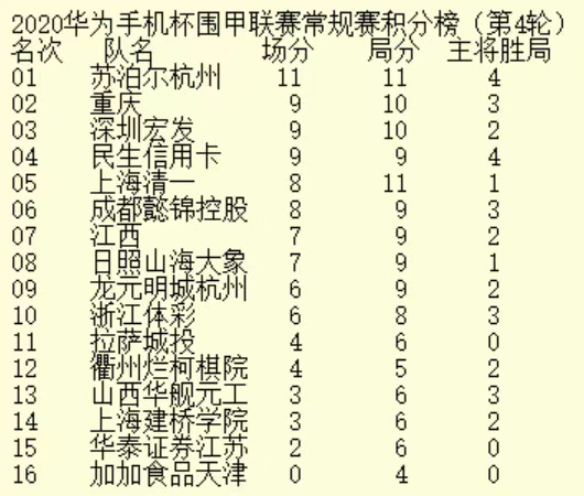 2020華為手機杯中國圍棋甲級聯(lián)賽第四輪深圳宏發(fā)3:1龍元明城杭州