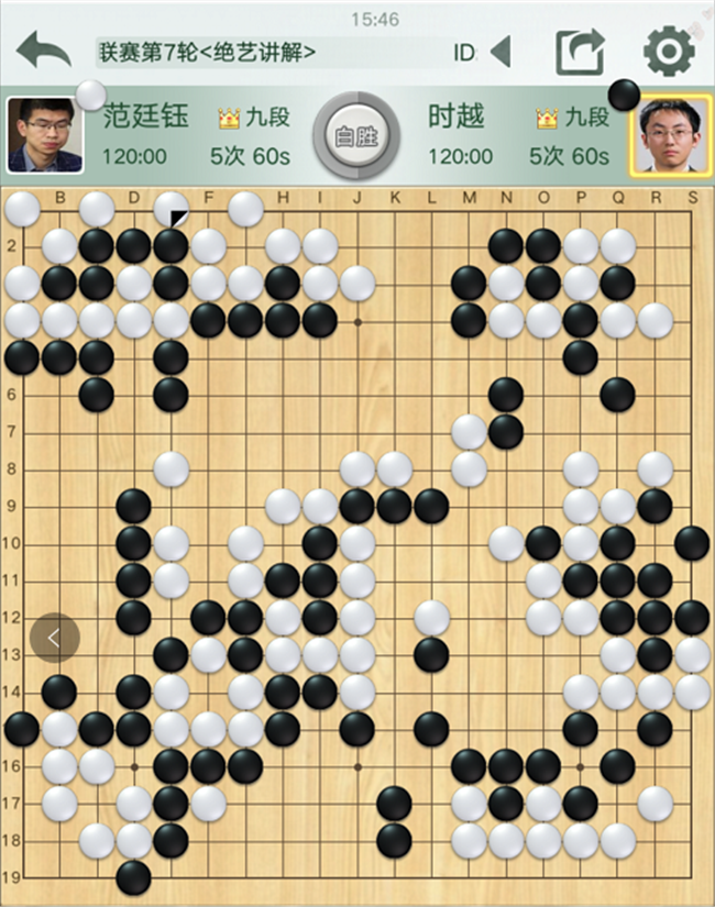 之后白棋穩(wěn)健運轉(zhuǎn),以較大優(yōu)勢直至終局。