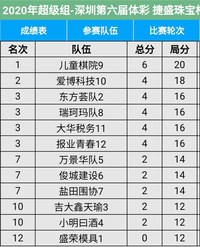 深圳市圍棋聯(lián)賽以其獨(dú)特的25D賽制,新穎的團(tuán)體對抗形式,旗鼓相當(dāng)?shù)膶?shí)力比拼,而深受圍棋愛好者的喜愛,已然成為每年一度的市圍棋愛好者的盛會(huì)。本屆聯(lián)賽共有28支隊(duì)伍參賽,每支隊(duì)伍12人,領(lǐng)隊(duì)和教練各一至兩人,今年參賽人數(shù)約四百多人。其中,超級隊(duì)12支,進(jìn)行11輪單循環(huán)比賽,甲級隊(duì)16支進(jìn)行11輪積分循環(huán)賽。具體賽程安排是:今日開賽后,連續(xù)四個(gè)周日,每周3場比賽,計(jì)劃在11月22日完成比賽。本屆比賽12支超級隊(duì)是:盛榮模具、東方薈隊(duì)、吉大隊(duì)、小明日酒、萬景華隊(duì)、俊城建設(shè)、鹽田棋協(xié)、瑞珂瑪隊(duì)、兒童棋院、愛博科技、大華稅務(wù)、報(bào)業(yè)青春。16支甲級隊(duì)是:中廣核華龍、武漢地質(zhì)、吉大校友、億貝奇電子、大眾建設(shè)、騰訊圍棋、奇力電子、羅湖圍棋、深圳大學(xué)、金陽信隊(duì)、和輝資本、法律人隊(duì)、鑫華豪家私、深圳126隊(duì)、越華建設(shè)、華科校友。大家濟(jì)濟(jì)一堂,通過手談增進(jìn)友誼,提高棋藝。本屆比賽超級組與甲級組實(shí)行升降制,將通過四個(gè)周日的比賽,分別決出前六名和三支升降的隊(duì)伍。