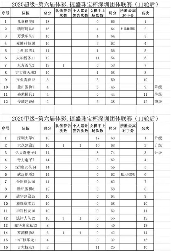 附錄:深圳市第六屆圍棋聯賽超級組、甲級組最終比賽結果