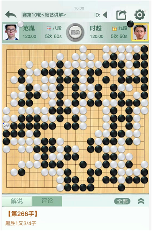 第一臺,快棋,戎毅執(zhí)白勝陳豪鑫。黑棋開局在右邊以及中盤在左上的下法略嫌松緩,白領(lǐng)先。之后黑棋沖擊白棋中央致使左邊形成打劫,白棋簡明處理后以較大優(yōu)勢進(jìn)入官子。最后黑棋為了強(qiáng)撐一目棋在自己空里出現(xiàn)打劫,在黑棋需要找很損的劫材時候黑方認(rèn)輸。
