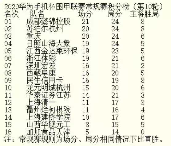 2020華為手機(jī)杯中國圍棋甲級聯(lián)賽第十輪