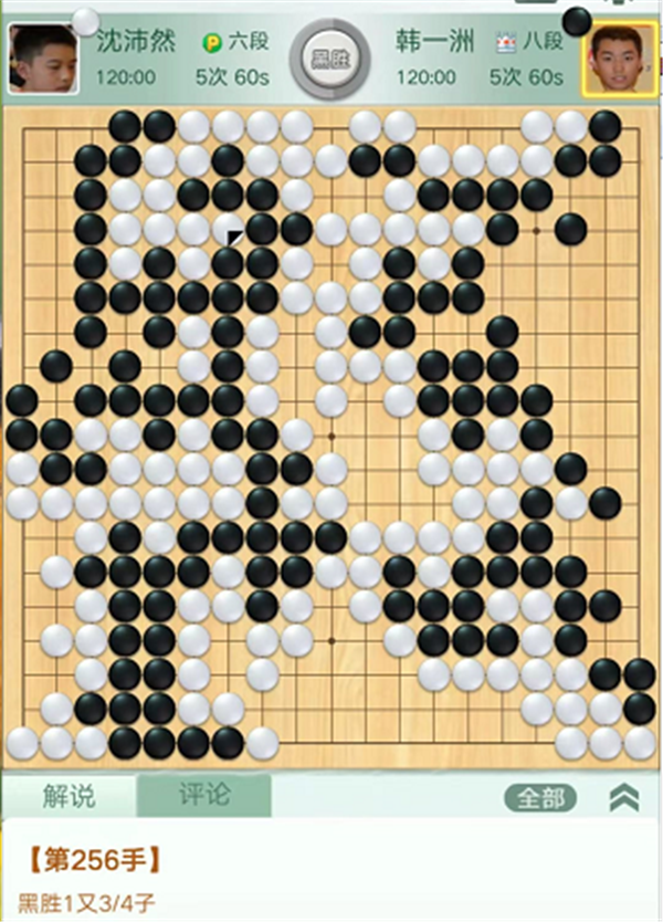 第一臺慢棋,由深圳隊(duì)的沈沛然六段執(zhí)白對陣衢州隊(duì)的韓一洲八段。開局白優(yōu)勢。中盤出于優(yōu)勢意識,一直沒有在黑棋右邊模樣里面施展手段,被黑圍起大空后局面難以掌握。中央白棋應(yīng)該對黑棋弱棋發(fā)起總攻,實(shí)戰(zhàn)貪吃黑三個殘子,導(dǎo)致局面接近。之后白棋形勢判斷有誤,招法松緩,以微弱差距落敗,沈沛然執(zhí)白1又3/4子負(fù)韓一洲。