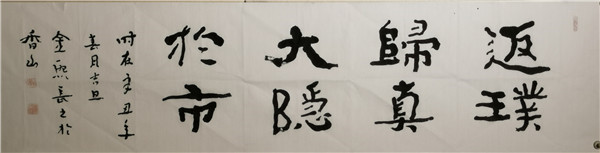 2011年隱居廣東中山,處江湖之遠(yuǎn)亦不忘躬耕,以書立德、以筆潤(rùn)身,專注于佛法經(jīng)文、家學(xué)文化和百家家訓(xùn)書法的研究,并創(chuàng)辦五福書院,通過(guò)教授古琴、書法、四書誦讀等形式開(kāi)班授課,以中國(guó)傳統(tǒng)文化踐行家學(xué)文化。歸隱而不忘憂國(guó),金熙長(zhǎng)先生自隱居以來(lái),在珠海、中山、深圳、上海等地舉辦了多次《以書立德、以筆潤(rùn)身——常福居士百家家訓(xùn)、百種心經(jīng)書法作品全國(guó)巡展》;2020年8月,金熙長(zhǎng)先生的《方正字跡-金熙長(zhǎng)標(biāo)題體》在方正字庫(kù)正式上線。