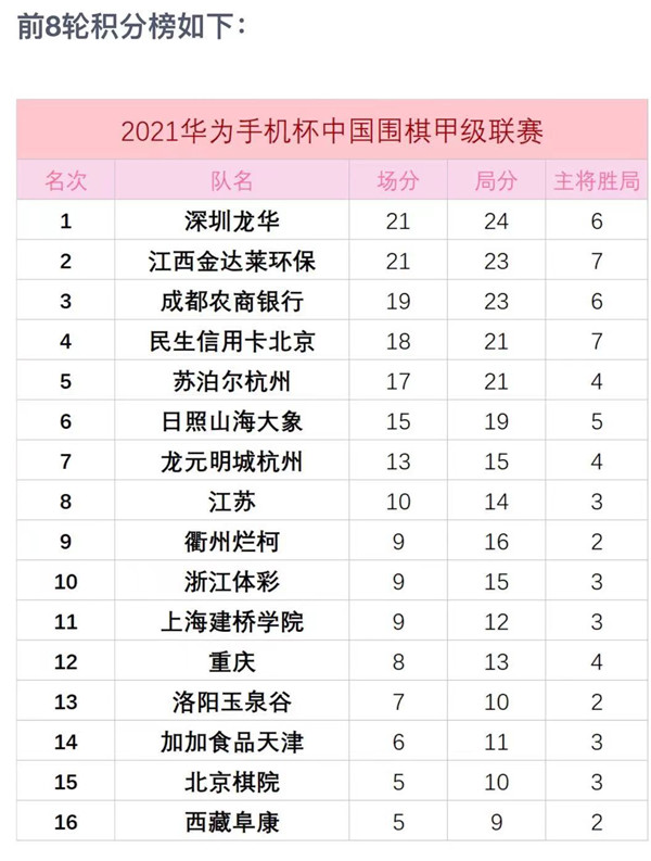 2021華為手機(jī)杯中國圍棋甲級聯(lián)賽常規(guī)賽第八輪深圳龍華隊(duì)4:0 洛陽玉泉谷隊(duì)