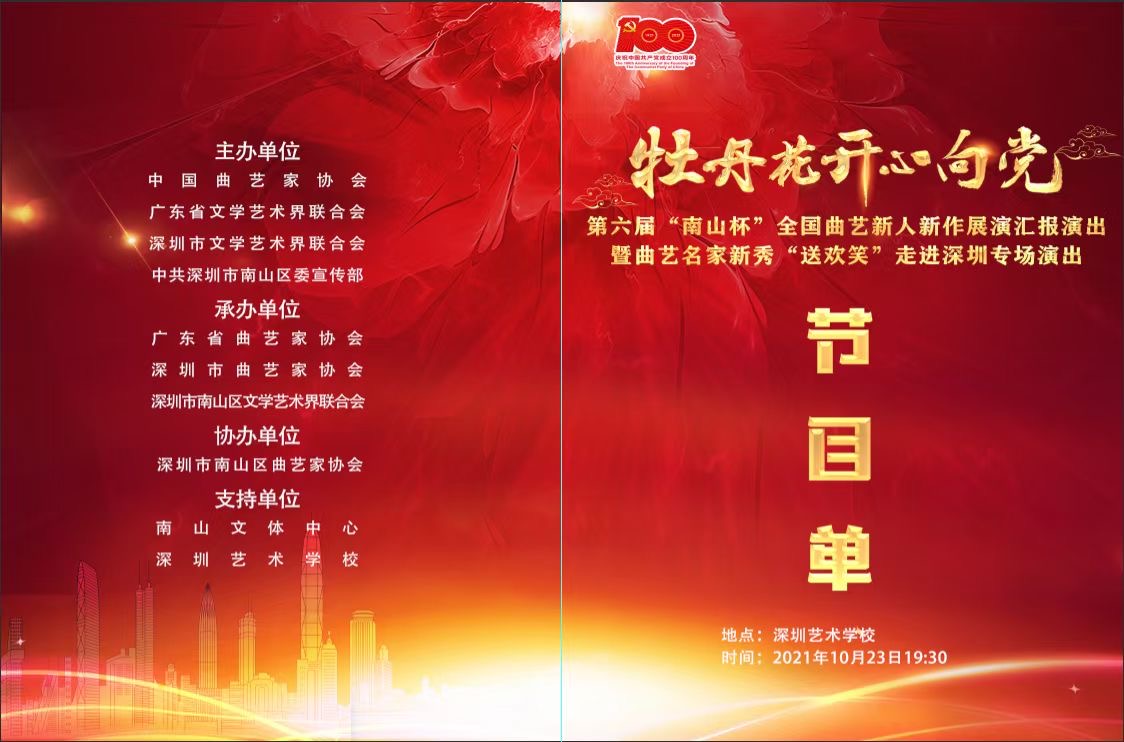 讀特客戶端·深圳新聞網(wǎng)2021年10月24日訊(記者 張俊達(dá))23日,深圳曲藝界迎來(lái)大日子?!澳档せㄩ_心向黨”——第六屆“南山杯”全國(guó)曲藝新人新作展演匯報(bào)演出暨曲藝名家新秀“送歡笑”走進(jìn)深圳專場(chǎng)演出在深圳南山藝術(shù)學(xué)校舉行。