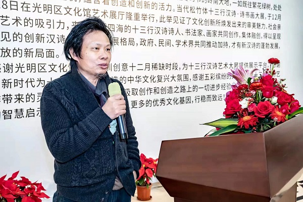 讀特客戶端·深圳新聞網(wǎng)2021年12月29日訊(記者 田志強(qiáng))近日,國家社科基金項(xiàng)目“當(dāng)代漢詩創(chuàng)新詩體研究”階段性成果展——十三行漢詩書畫作品展,于光明區(qū)文化館成功舉辦。本次展覽集中展示本項(xiàng)目重要研究成果、全國各地新漢詩詩人的原創(chuàng)十三行漢詩之書畫作品等。十三行漢詩創(chuàng)立八年以來,得到了海內(nèi)外詩人的廣泛關(guān)注,在國家社科基金研究團(tuán)隊(duì)精研闡釋的基礎(chǔ)上,得到了學(xué)術(shù)界的肯定。