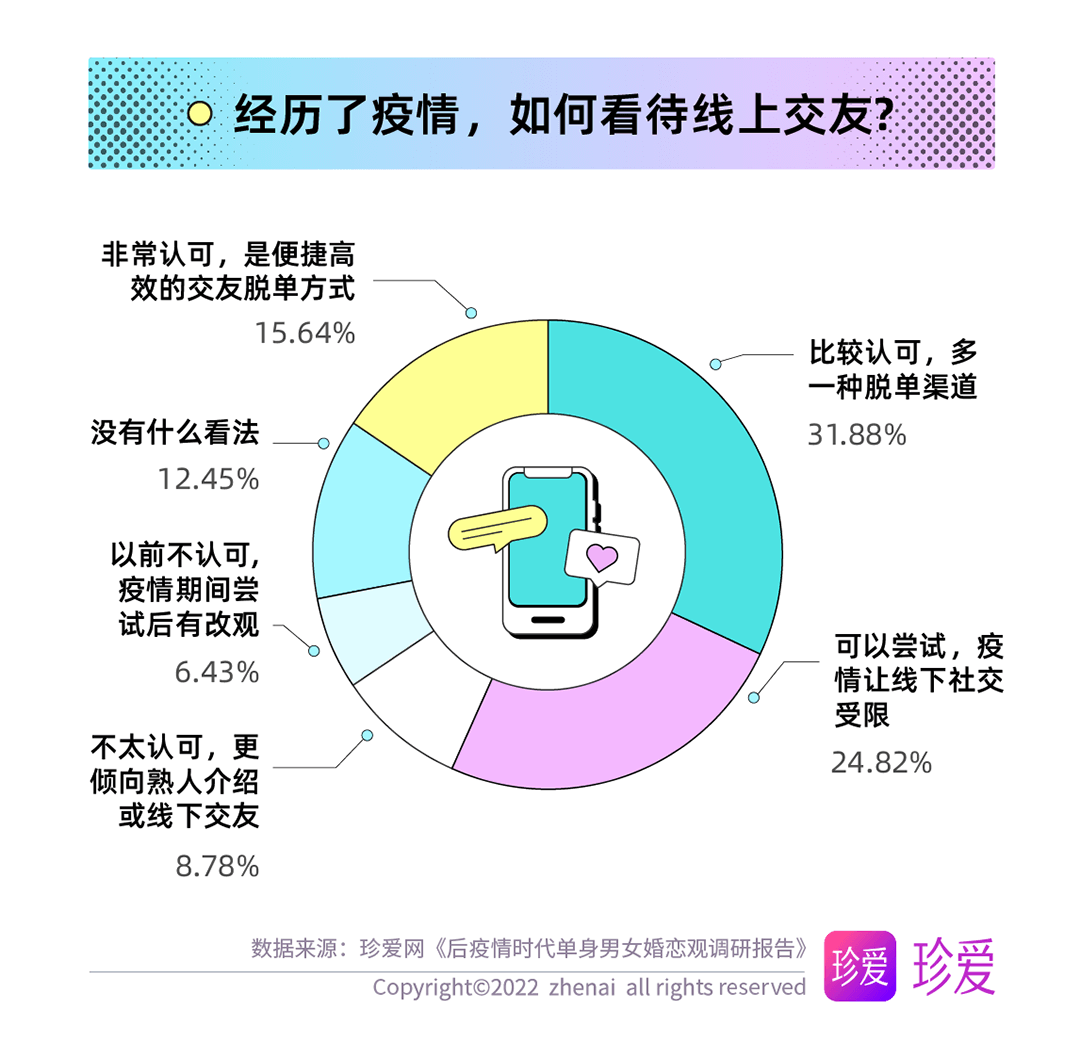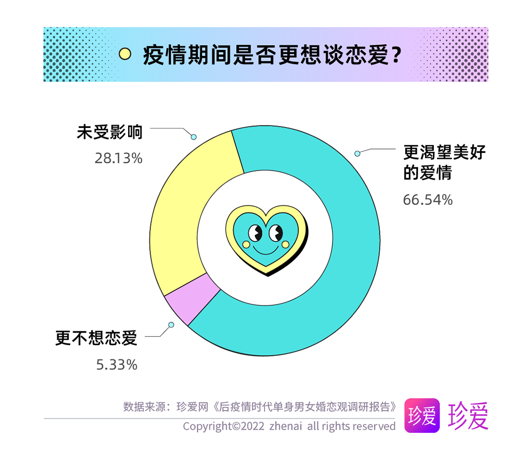 讀特客戶端·深圳新聞網(wǎng)2022年6月14日訊(記者 葉梅)疫情讓人們的生活狀態(tài)、工作方式和個(gè)人習(xí)慣都發(fā)生了顯著變化,而對(duì)單身人群而言,疫情三年他們對(duì)感情的態(tài)度又有哪些改變?現(xiàn)在的他們?nèi)绾慰创H密關(guān)系?珍愛(ài)網(wǎng)聚焦后疫情時(shí)代單身人群的婚戀觀發(fā)起調(diào)研,探究疫情期間單身人群在戀愛(ài)期待、擇偶標(biāo)準(zhǔn)、脫單難度等方面的變化。本次調(diào)研共回收問(wèn)卷9862份。