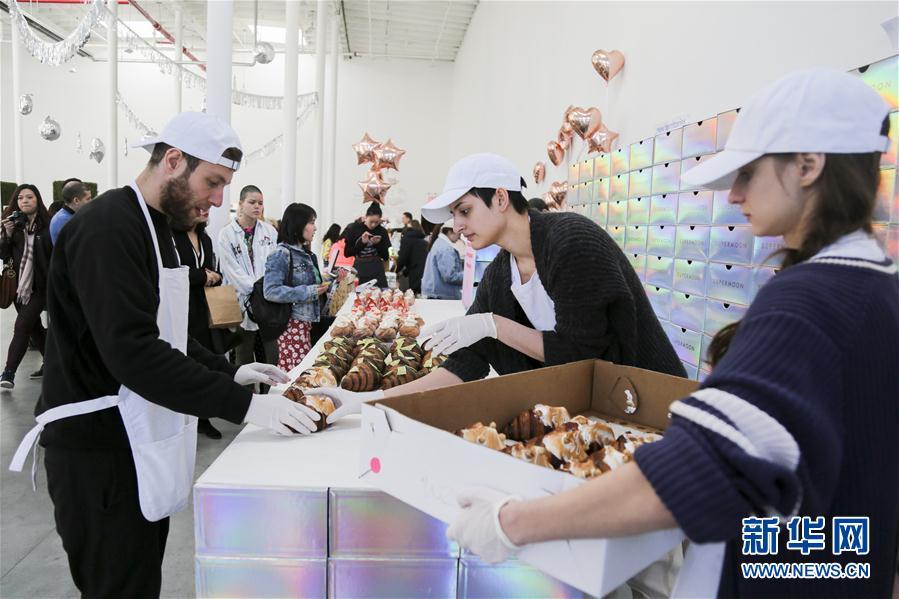 3月18日,在美國紐約,工作人員在甜品節(jié)上準(zhǔn)備出售熱門甜品。一年一度的紐約“甜品目標(biāo)”甜品節(jié)于17日開幕,20多家甜品展商在現(xiàn)場展示造型精美、創(chuàng)意十足的美味甜品,吸引超過5000名甜品愛好者報(bào)名參加。甜品節(jié)還精心設(shè)置了美拍專區(qū),方便人們在享用甜品的同時(shí)在社交平臺(tái)上分享甜蜜時(shí)刻。新華社記者王迎攝