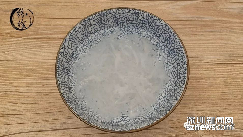 經(jīng)過(guò)3~5小時(shí)的浸泡后,燕窩已經(jīng)完全泡開。此時(shí)用一把小鑷子,將泡發(fā)出的細(xì)碎的燕毛等雜質(zhì)挑出來(lái),清洗干凈泡開的燕窩。