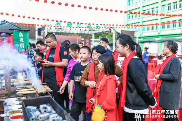 “太熱鬧了!離開湖南老家來到深圳后,從來沒有體會到這么熱鬧喜慶的場面。這么多人一起過年、吃宴席,也只有在湖南老家過年的時候才能感受到。農(nóng)耕記傳承湖南過年習(xí)俗和文化,是對傳統(tǒng)文化的繼承和發(fā)揚(yáng),值得點(diǎn)贊。”老家在 衡陽的顧客小羅在現(xiàn)場說到。